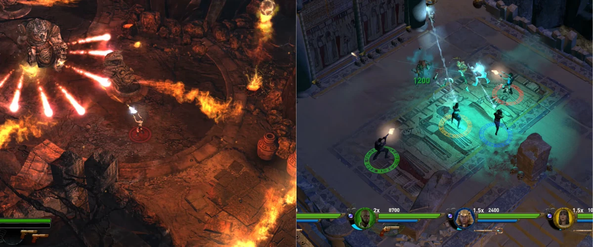 Ambos os títulos apresentam uma jogabilidade com visão isométrica, focada em combate dinâmico, exploração de tumbas e resolução de puzzles. O grande destaque fica para o modo cooperativo, que permite jogar com amigos em partidas locais para até 4 jogadores, tornando a experiência ainda mais divertida.